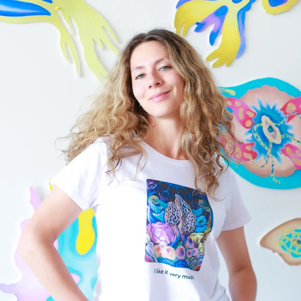 Irene Antonez is a Prague-based multimedia artist and art educator. She creates surreal, psychedelic-looking paintings with a focus on plant world, fungi, and microorganisms. Irene Antonez holds two master’s degrees in Fine Art and Future Design from Prague City University. Her paintings are in private collections in the USA, France, Italy, the Czech Republic, Romania, Russia, and more. Antonez’s work has been exhibited in numerous group & solo exhibitions, and art & music festivals. For the past 3 years she has been teaching art classes in universities, schools, festivals, hotels, cafes, at conferences, as well as in her own art studio. Antonez developed a unique approach to seminars that unite art, nature, and science. She aims to inspire her students to be open-minded, experimental, intuitive, and curious.